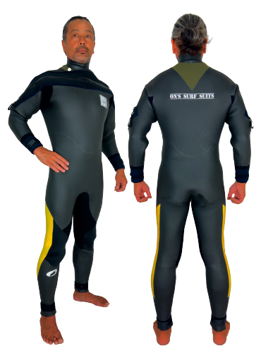 防水性を強化したアクティブフロントは、オンズがいち早く採用しテスト重ねたタイプのドライスーツです。一番の特徴は完全防水ファスナーの使用により着脱時の開口部を大きく開けることです。それにより特に脱ぐときのわずらわしさを感じません。運動性、保温性、着脱のし易さとすべてを兼ね備えたオンズお勧めのスーツです。